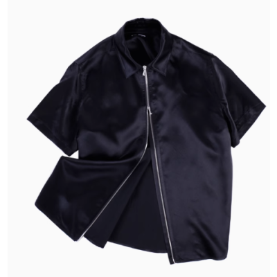 丝滑挺阔感 高档全醋酸 拉链短袖翻领衬衣