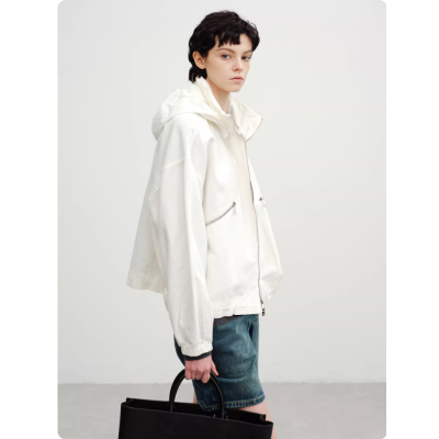 宁儿/秋季新品极简廓形结构亚麻牛仔连帽上衣夹克外套女ZMD-24521