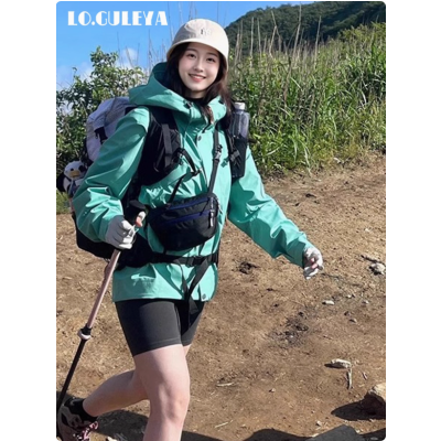 LO.GULEYA冲锋衣绿色款女2025新款户外三合一高级感防风登山夹克