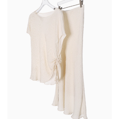 桑蚕丝套装女夏新款透气真丝冠乐皱上衣鱼尾裙半身裙两件套